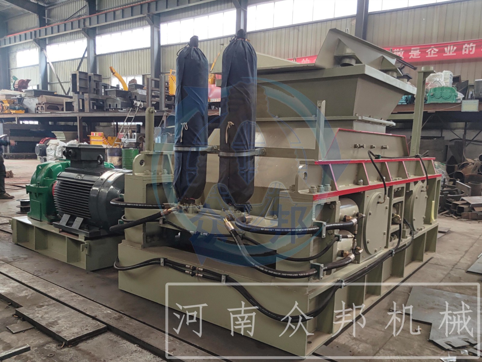 河南眾邦礦山機械設備有限公司(原河南省礦山機械設備有限公司)是專業從事研磨設備、破碎設備、粉碎機械、人工制砂設備、各種配套礦山設備以及各種民用設備的開發和生產的單位,公司主打產品:樹枝粉碎機,園林綠化樹枝粉碎機,城市綠化樹枝粉碎機,手推式樹枝粉碎機,鏈板進料木材破碎機,大型木頭樹枝粉碎機,環錘式破碎機, 顎式破碎機,液壓對輥破碎機,液壓雙輥制砂機,對輥制砂機,反擊破碎機,齒輥式破碎機,木材粉碎機,木料粉碎機,鋸末粉碎機,木屑粉碎機,礦石破碎機,木材切片機,木頭削片機,木材破碎機,鋸末烘干機,雙輥式破碎機等。自公司成立以來,注重自身形象建設,堅持以“誠信為本,品質至上”的經營理念,深受廣大國內外客戶的好評。公司擁有一支經驗豐富、技術精湛的售后服務團隊,客戶購機前,公司免費派工程技術人員到現場為用戶規劃場地,設計最佳流程和方案;購機后,公司將免費指派專業的售后服務人員到達現場指導客戶安裝調試和規劃管理設備。眾邦機械始終以;真誠的信譽,先進的技術,可靠的質量,滿意的服務來滿足廣大客戶對我們公司產品的需求。